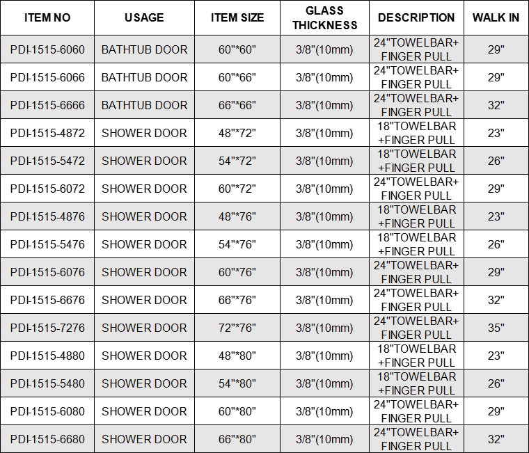 DENALI SHOWER DOOR SERIES : DOUBLE SLIDING FRAMELESS SHOWER DOORS ,CLEAR GLASS DOOR FOR MODERN LOOK FOR YOUR BATH 10MM (3/8)" TOUGHENED